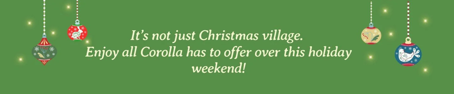 Our Christmas Village experience begins where Schoolhouse Ln meets Corolla Village Ln. Lights and events will cover .25 miles of road along Corolla Village Ln, inviting patrons to weave in and out of local businesses and shops across the quaint historic district.